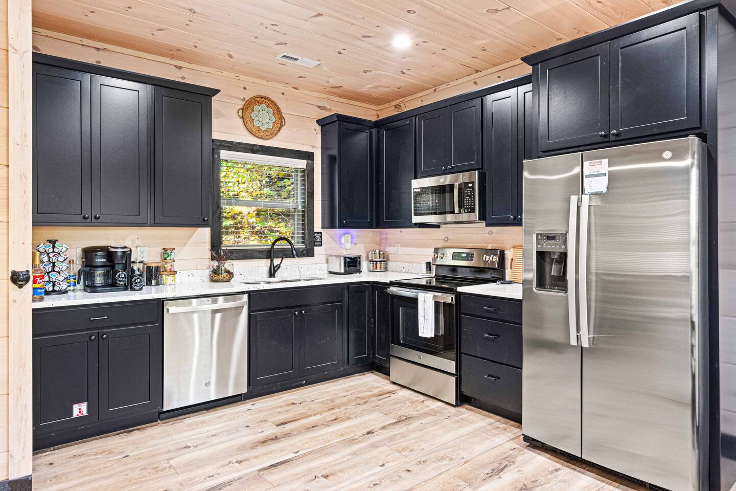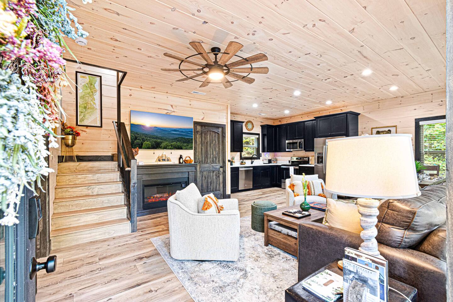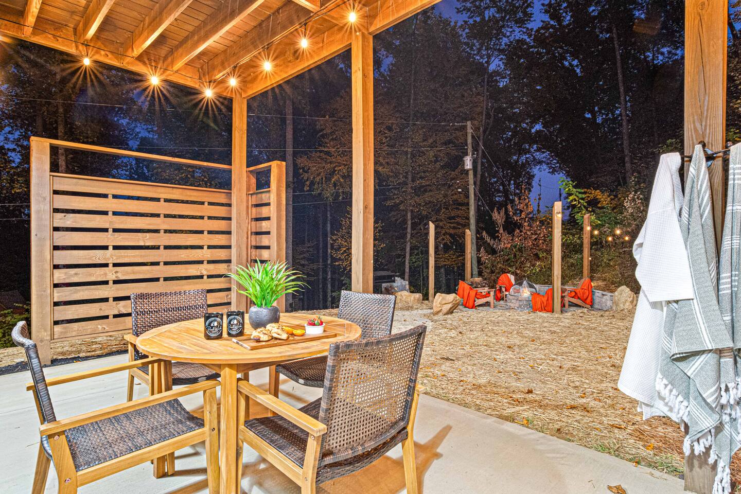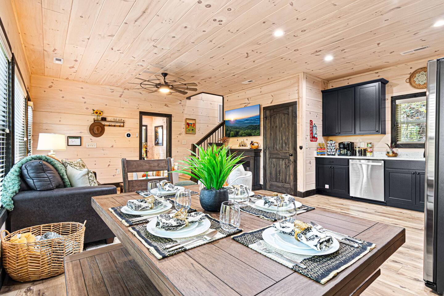 "Modern Comfort + Close To It All" is more than a clever tagline - it's the essence of Pearl Woods Lodge. Here, you'll find thoughtful touches like a stocked coffee bar, outdoor blankets, and upgraded bedding which offer a reprieve from your daily routine. This newly constructed, modern gem is tucked in the forest less than 1 mile from the Foothills Parkway and serves as a centrally located gateway to an idyllic Smoky Mountain experience. We’re just 3 miles from either Gatlinburg or Pigeon Forge, and only 6.5 miles to Great Smokey Mountain National Park. The home is well suited for families who prefer a private experience where they can enjoy their own space or for friend groups traveling together. We've provided trip essentials for you like soaps, shampoos, and paper products. But, we've also furnished supplies for the coffee bar, a supply of firewood, and plenty of kitchen products to make dining in a 'real' option. But, we go beyond that. There are kid-friendly dishes, utensils, books and games. And we've done the same for you - games, Turkish robes, and plenty of outdoor opportunities to soak in this mountain experience.