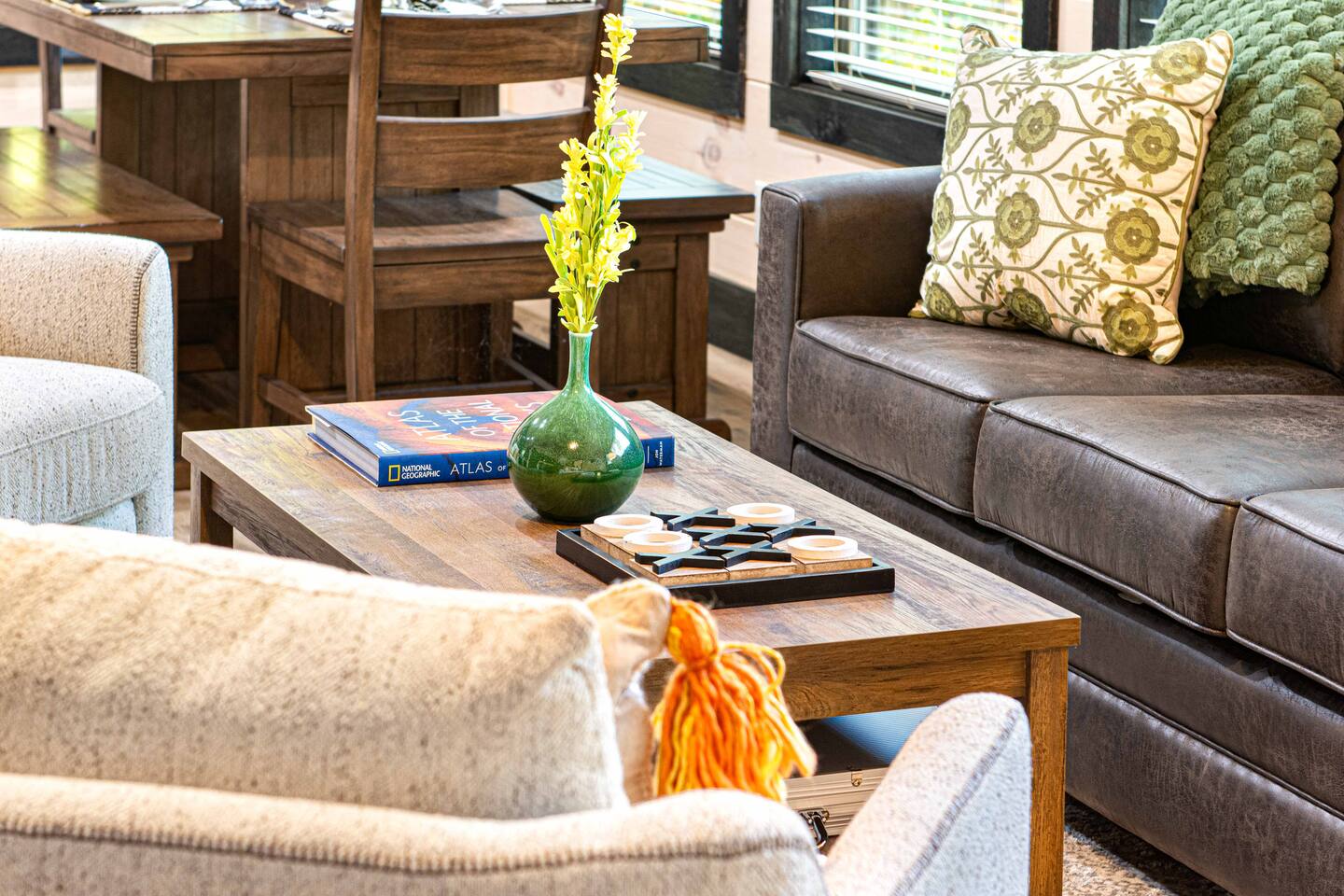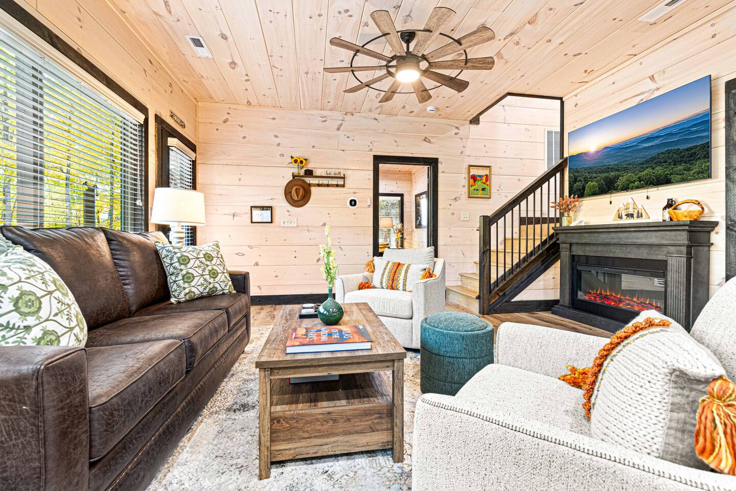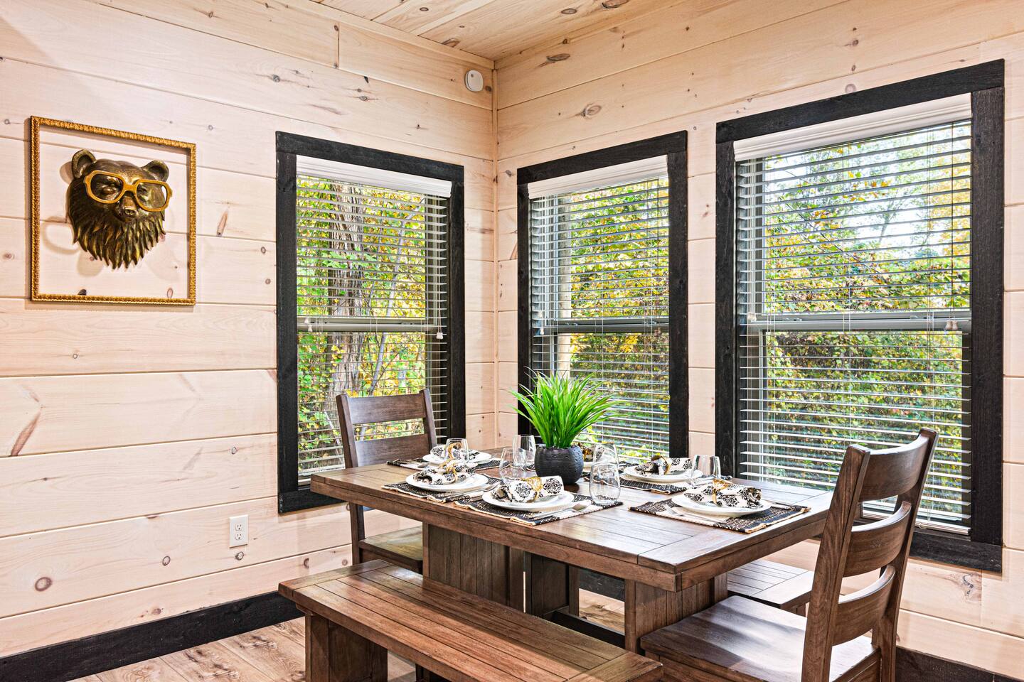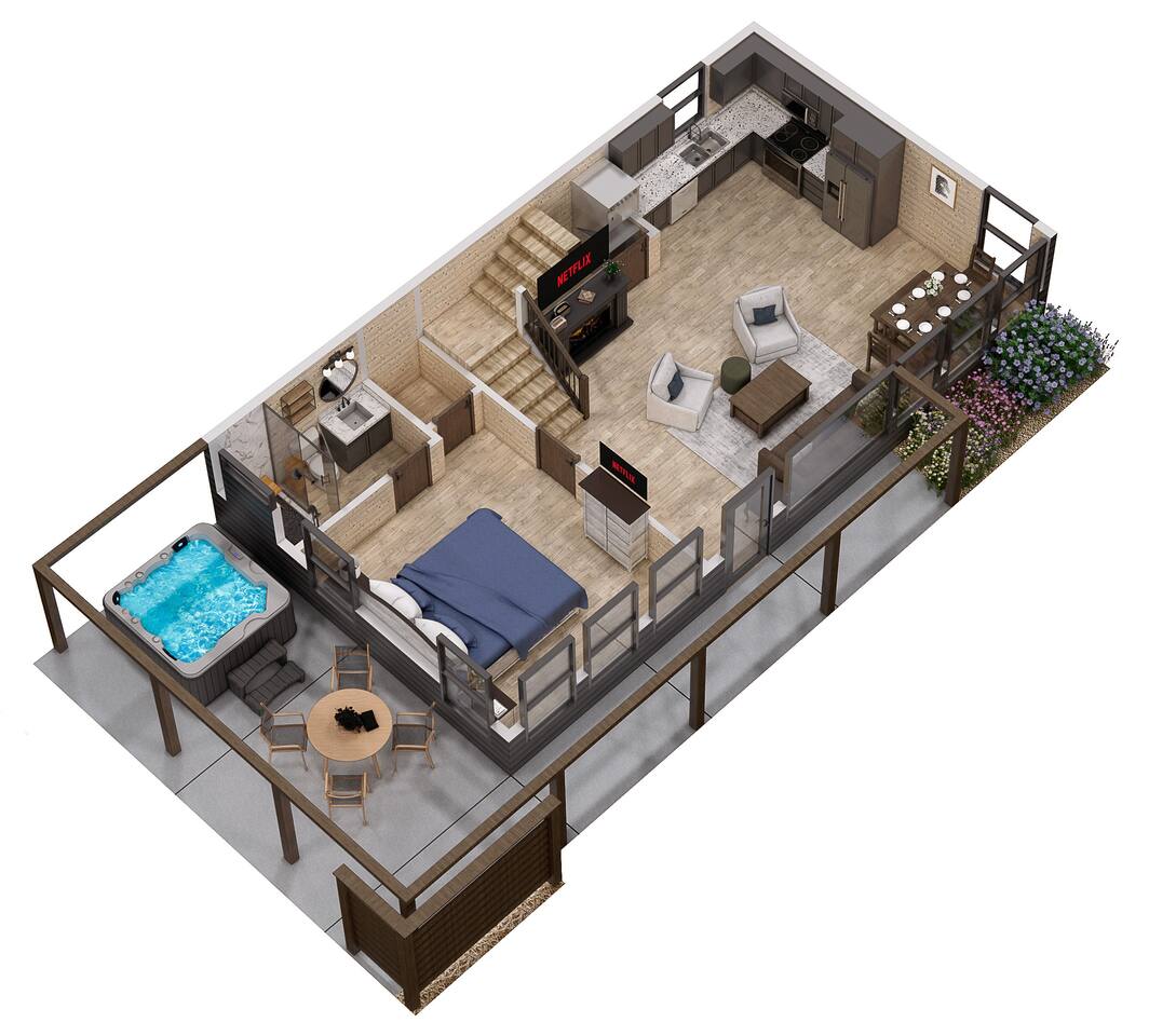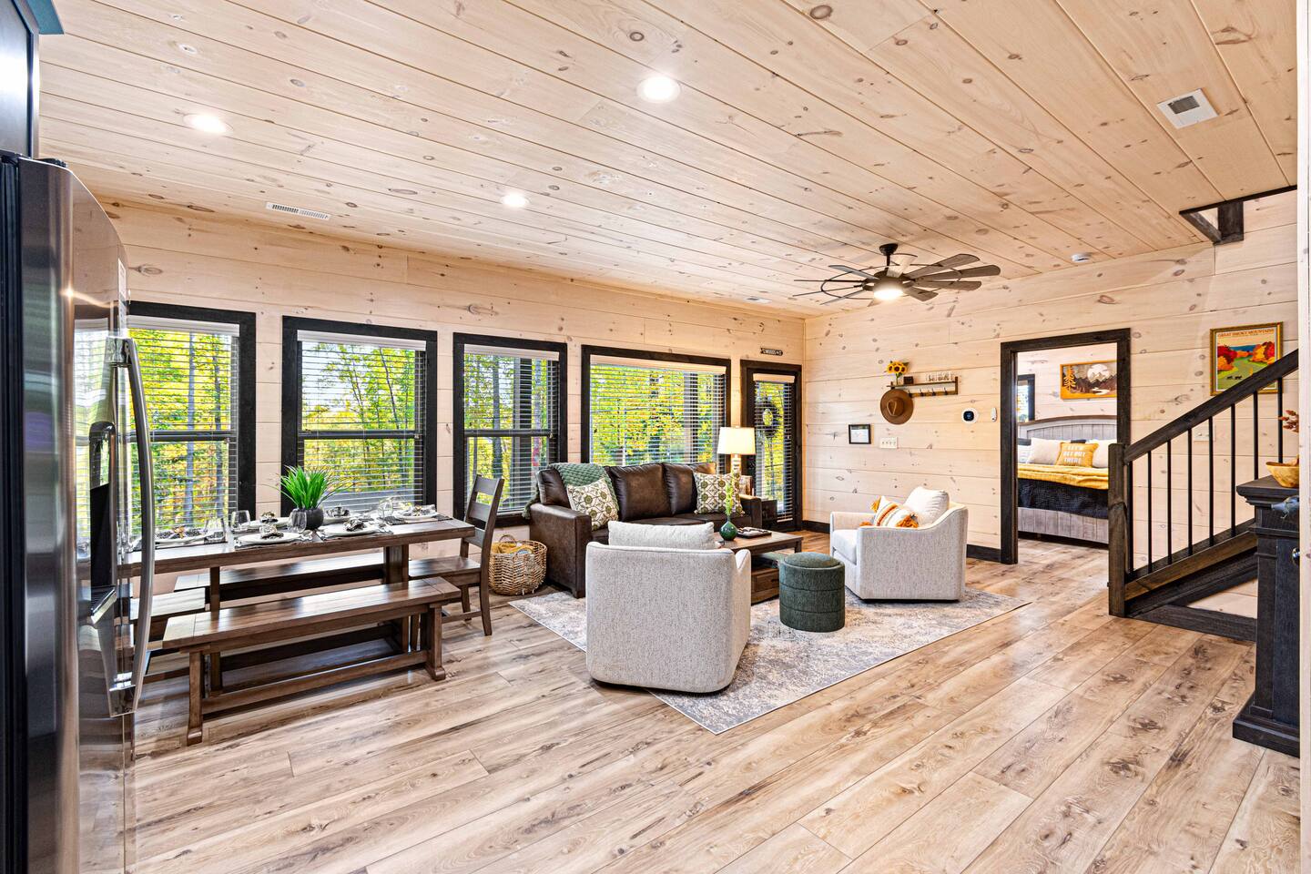 "Modern Comfort + Close To It All" is more than a clever tagline - it's the essence of Pearl Woods Lodge. Here, you'll find thoughtful touches like a stocked coffee bar, outdoor blankets, and upgraded bedding which offer a reprieve from your daily routine. This newly constructed, modern gem is tucked in the forest less than 1 mile from the Foothills Parkway and serves as a centrally located gateway to an idyllic Smoky Mountain experience. We’re just 3 miles from either Gatlinburg or Pigeon Forge, and only 6.5 miles to Great Smokey Mountain National Park. The home is well suited for families who prefer a private experience where they can enjoy their own space or for friend groups traveling together. We've provided trip essentials for you like soaps, shampoos, and paper products. But, we've also furnished supplies for the coffee bar, a supply of firewood, and plenty of kitchen products to make dining in a 'real' option. But, we go beyond that. There are kid-friendly dishes, utensils, books and games. And we've done the same for you - games, Turkish robes, and plenty of outdoor opportunities to soak in this mountain experience.