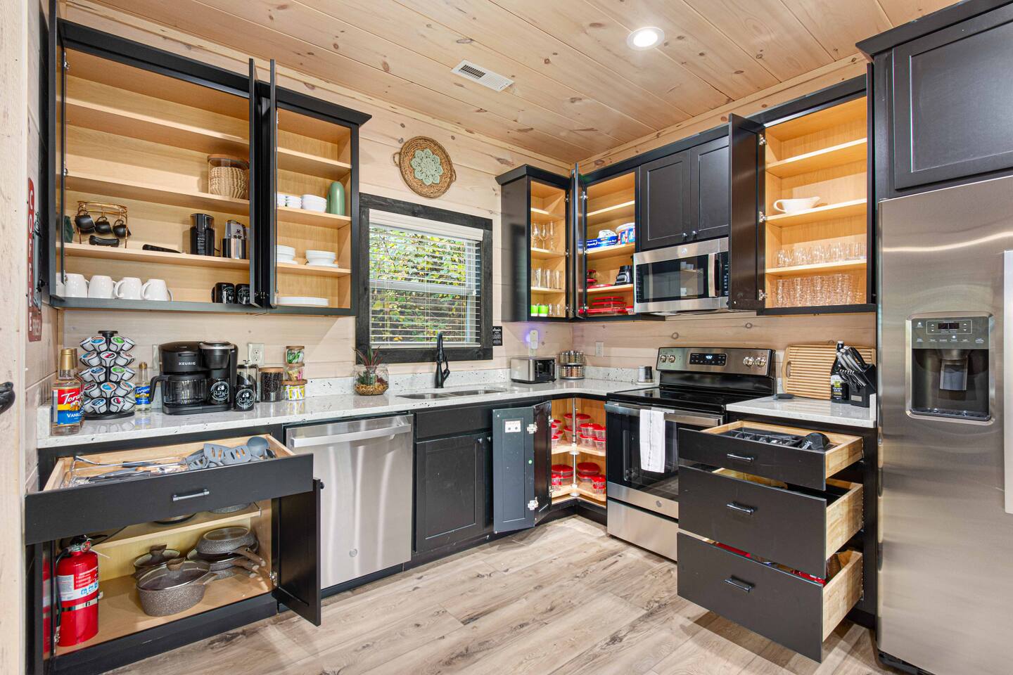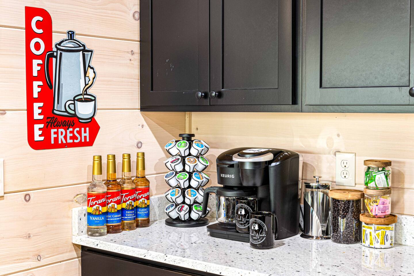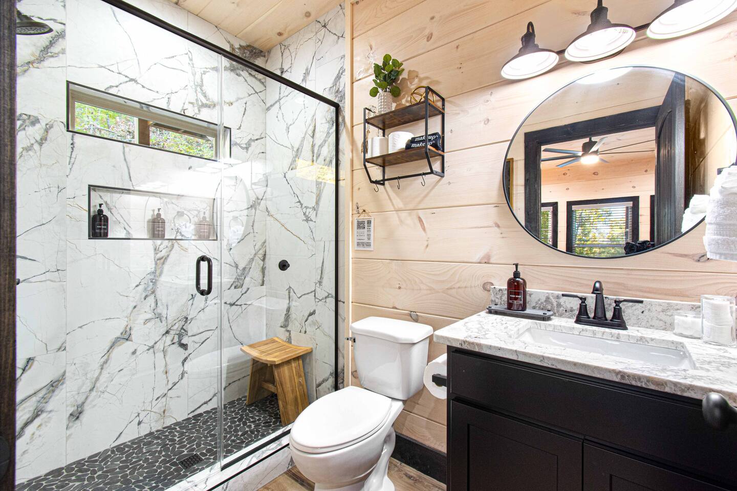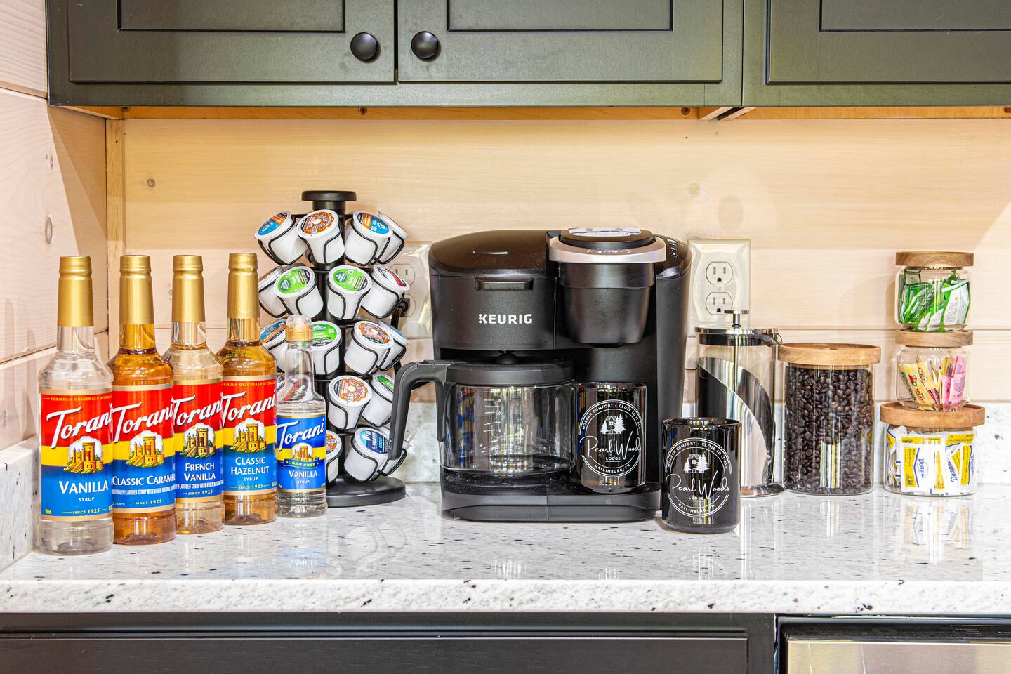 "Modern Comfort + Close To It All" is more than a clever tagline - it's the essence of Pearl Woods Lodge. Here, you'll find thoughtful touches like a stocked coffee bar, outdoor blankets, and upgraded bedding which offer a reprieve from your daily routine. This newly constructed, modern gem is tucked in the forest less than 1 mile from the Foothills Parkway and serves as a centrally located gateway to an idyllic Smoky Mountain experience. We’re just 3 miles from either Gatlinburg or Pigeon Forge, and only 6.5 miles to Great Smokey Mountain National Park. The home is well suited for families who prefer a private experience where they can enjoy their own space or for friend groups traveling together. We've provided trip essentials for you like soaps, shampoos, and paper products. But, we've also furnished supplies for the coffee bar, a supply of firewood, and plenty of kitchen products to make dining in a 'real' option. But, we go beyond that. There are kid-friendly dishes, utensils, books and games. And we've done the same for you - games, Turkish robes, and plenty of outdoor opportunities to soak in this mountain experience.