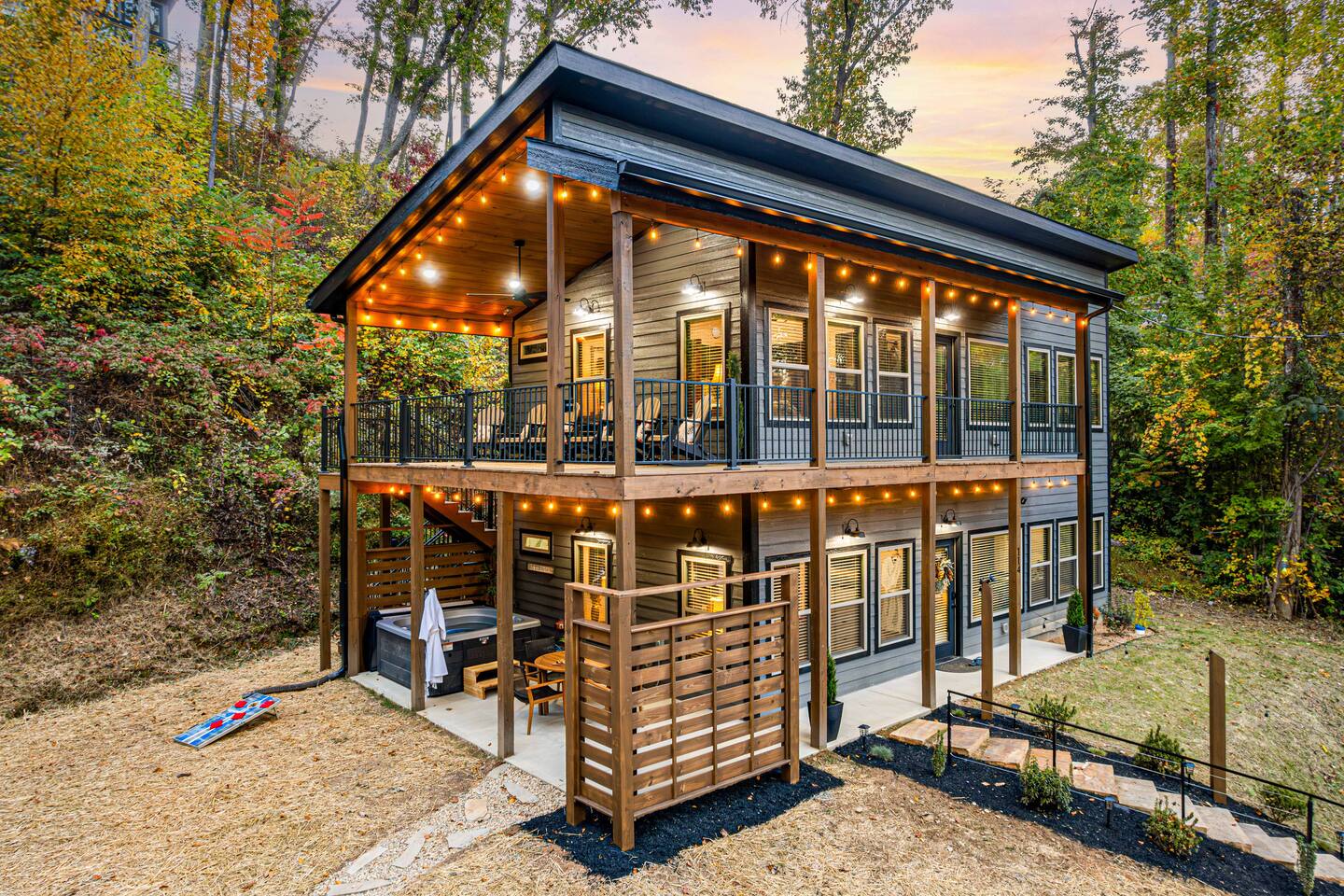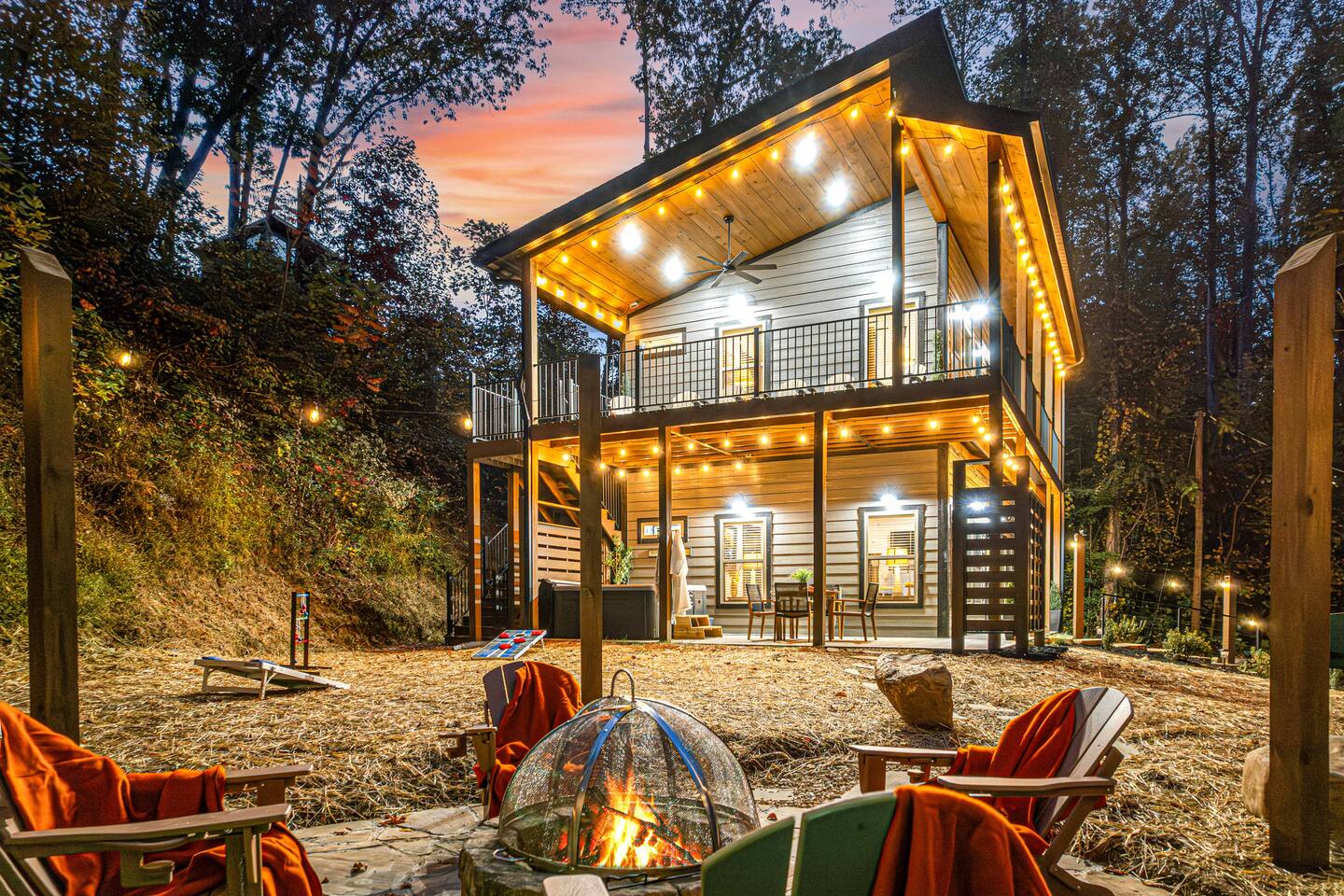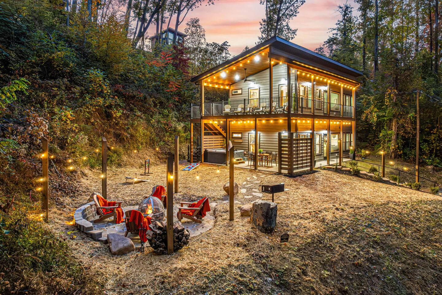 We provide a digital guidebook to help make your stay easy and provide instructions for many of the house features. Provided Basics: • Electronic Locks • Routine, Monthly Pest Treatments by Johnson Pest Control • Hotel-style Wifi • Spa Towels • Bath Sheets, Hand Towels, Wash Cloths • Make-Up Towels • Soap, Shampoo & Conditioner • Initial Paper Products Amenities – Outdoor: • Charcoal Grill & Grill Tools • Custom Firepit with Adirondack Chairs •.Propane fire table on upper balcony added June 2025 • Hot Tub with Seating for 6, drained, cleaned and refilled between each guest stay • Outdoor Dining Space with 4 chairs • Rocking Chairs on the Balcony • Games – Cornhole, Ladder Ball, Adult / Kid-Sized Footballs, Velcro Catch Game. Bucket Golf added June 2025. • Level Parking for 2 Vehicles, Additional Parking on Lower Driveway • Lighted Entry Steps with Handrail • Upper and Lower Level Bistro Lights for added comfort & safety Amenities – Indoor: • Full Length Mirrors in each bedroom added June 2025 • Electronic Fireplace • Bedding from Crate & Barrel and Anthropologie • Turkish Robes • K-Cups, Coffee Beans • Sweeteners & Syrups • Coffee Grinder • Milk Frother • Coffee Filters • French Press • Mini Waffle Maker • Serving Platter, Gravy Boat, Charcuterie Board • Pots, Pans, Baking Ware including Cookie Sheets • Corkscrew • Stacked Washer & Dryer with Initial Detergent Pods • Acrylic Glasses for Outdoor Use • 4 Televisions (Stream from your Accounts) • Luma Duo Bluetooth Speakers for your playlists (added June 2025) • Pool Table • Multicade Arcade Game • Foosball • Poker Chips / Cards • Uno • Apples-to-Apples • Yahtzee • Checkers • Chess • Chutes & Ladders • Twister • Children’s Books • First Aid Kit • Emergency Lantern Please note that we’re unable to offer refunds for inclement weather, COVID, or other extenuating circumstances. Airbnb’s cancellation policy will govern these situations. It’s recommended that you purchase travel insurance for your trip.