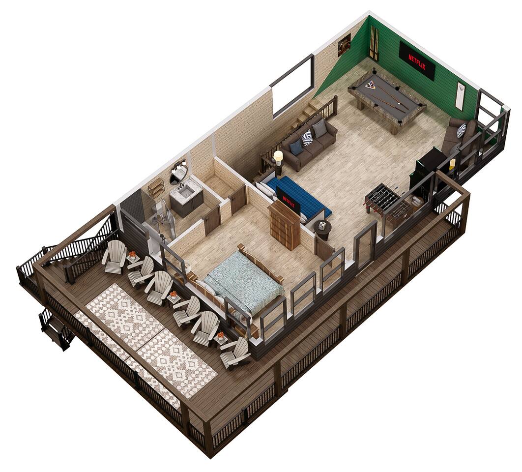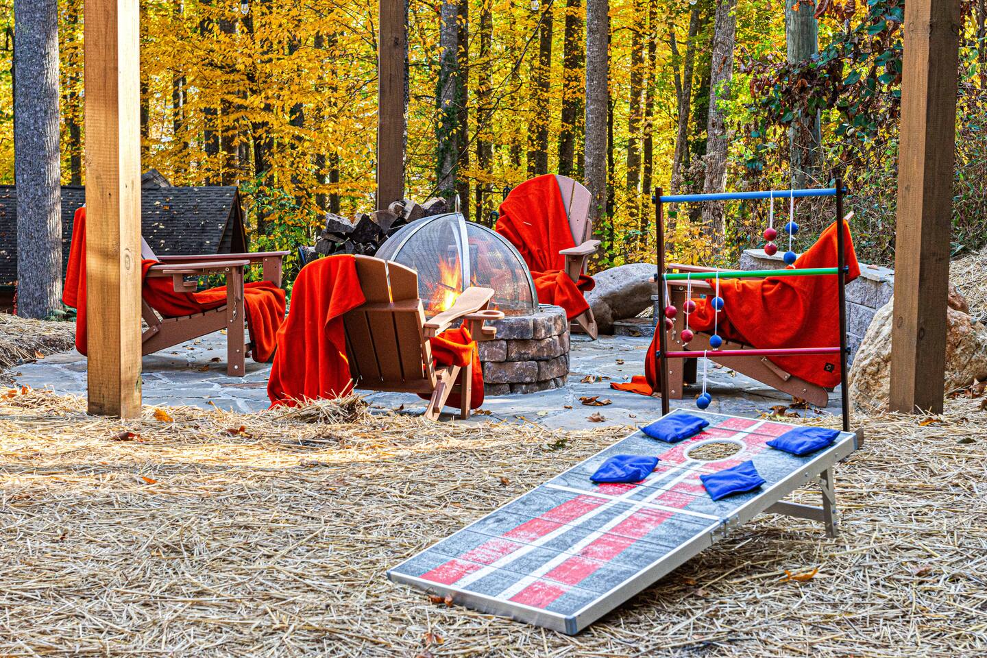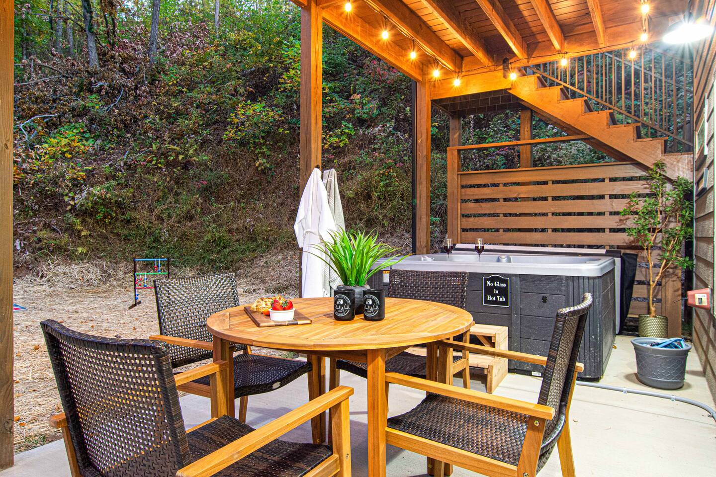 We provide a digital guidebook to help make your stay easy and provide instructions for many of the house features. Provided Basics: • Electronic Locks • Routine, Monthly Pest Treatments by Johnson Pest Control • Hotel-style Wifi • Spa Towels • Bath Sheets, Hand Towels, Wash Cloths • Make-Up Towels • Soap, Shampoo & Conditioner • Initial Paper Products Amenities – Outdoor: • Charcoal Grill & Grill Tools • Custom Firepit with Adirondack Chairs •.Propane fire table on upper balcony added June 2025 • Hot Tub with Seating for 6, drained, cleaned and refilled between each guest stay • Outdoor Dining Space with 4 chairs • Rocking Chairs on the Balcony • Games – Cornhole, Ladder Ball, Adult / Kid-Sized Footballs, Velcro Catch Game. Bucket Golf added June 2025. • Level Parking for 2 Vehicles, Additional Parking on Lower Driveway • Lighted Entry Steps with Handrail • Upper and Lower Level Bistro Lights for added comfort & safety Amenities – Indoor: • Full Length Mirrors in each bedroom added June 2025 • Electronic Fireplace • Bedding from Crate & Barrel and Anthropologie • Turkish Robes • K-Cups, Coffee Beans • Sweeteners & Syrups • Coffee Grinder • Milk Frother • Coffee Filters • French Press • Mini Waffle Maker • Serving Platter, Gravy Boat, Charcuterie Board • Pots, Pans, Baking Ware including Cookie Sheets • Corkscrew • Stacked Washer & Dryer with Initial Detergent Pods • Acrylic Glasses for Outdoor Use • 4 Televisions (Stream from your Accounts) • Luma Duo Bluetooth Speakers for your playlists (added June 2025) • Pool Table • Multicade Arcade Game • Foosball • Poker Chips / Cards • Uno • Apples-to-Apples • Yahtzee • Checkers • Chess • Chutes & Ladders • Twister • Children’s Books • First Aid Kit • Emergency Lantern Please note that we’re unable to offer refunds for inclement weather, COVID, or other extenuating circumstances. Airbnb’s cancellation policy will govern these situations. It’s recommended that you purchase travel insurance for your trip.